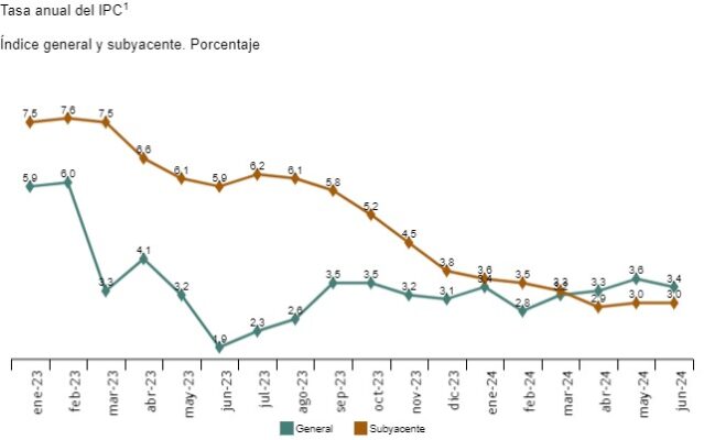 La tasa de variación anual estimada de la inflación subyacente (índice general sin alimentos no elaborados ni productos energéticos) se mantiene en el 3,0%, la misma que la registrada en mayo.