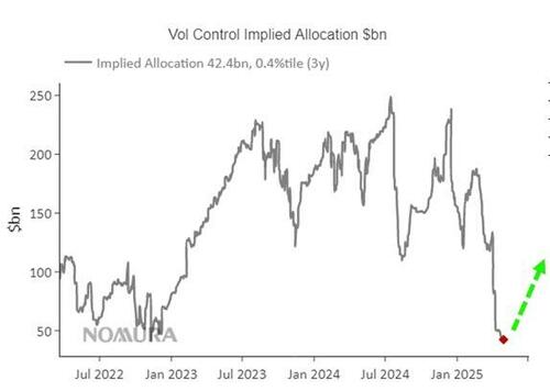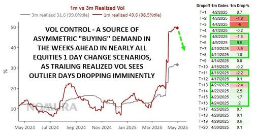Pero como vemos que el rVol de seguimiento “se está recuperando” de los cambios diarios de cierre a cierre cada vez más comprimidos en el Índice Spot, y con una serie de valores atípicos masivos de mercado de cambio de 1 día que se prevé que caigan en las próximas semanas, la “oferta asimétrica” recientemente unidireccional de Acciones para la venta del universo de Volatilidad Objetivo / Control de Volatilidad ahora comenzará a convertirse en una fuente de “demanda de COMPRA asimétrica” potencial de manera puramente mecánica en el próximo mes, salvo por supuesto más “Shocks de Vol” de Sorpresas Macroeconómicas a la Baja (ya sea política arancelaria o datos económicos).