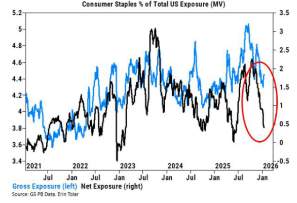 • PB Mark-to-Market: Consumo básico fue el sector más vendido neto en prime brokerage la semana pasada (venta inicial de defensivos al empezar el año y foco en GLP-1), y eso se está revirtiendo esta semana (la parte defensiva, no la de GLP-1).