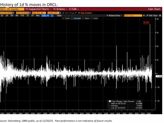 RESULTADOS DE ORCL… A mediados de septiembre, ORCL se dispara al alza tras revelar que había firmado cuatro acuerdos de IA de varios miles de millones de dólares y que su cartera de ingresos contratados, pero aún no reconocidos, se había inflado hasta los 455.000 millones de dólares, un sorprendente salto interanual del +359 %.
