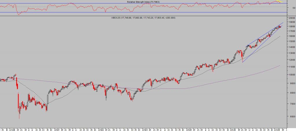 El selectivo español IBEX-35 también está goteando a la baja en las últimas fechas pero consiguiendo respetar referencias de control de la pauta desplegada en los últimos meses, comportamiento similar del del Dow Jones y ambos compartiendo un aspecto técnico cargado de motivos para la cautela.