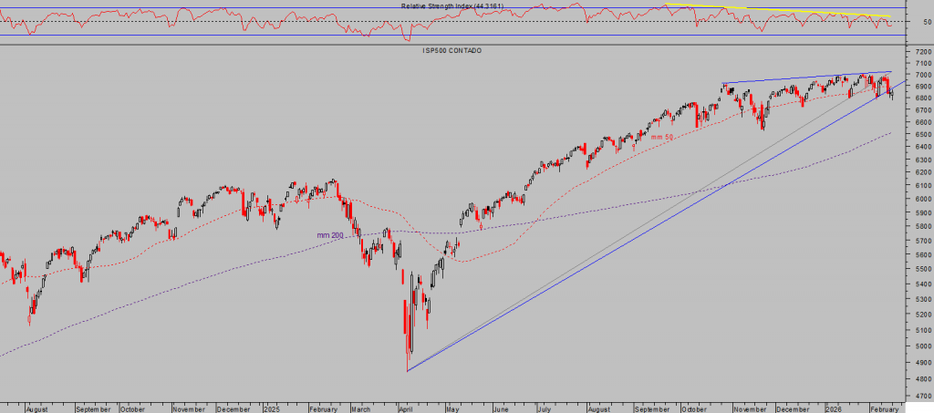 El SP500 algo más sostenido pero también en situación delicada de corto plazo y el Dow Jones se aferra a mantenerse cotizando dentro de los confines de la pauta técnica desplegada desde los mínimos del pasado mes de abril.