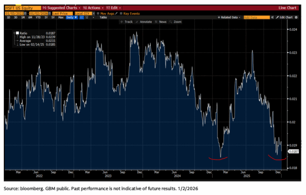 Live Nation (LYV): infrarindió al mercado (S&P) en ~15 puntos en el 4T25, igualando su mayor trimestre de infrarendimiento desde la COVID (1S20). Esto ha abierto un debate intenso de cara al cierre de año sobre si existe o no una historia de giro (turnaround), especialmente por las dudas sobre la durabilidad del AOI (visibilidad del crecimiento del DD).