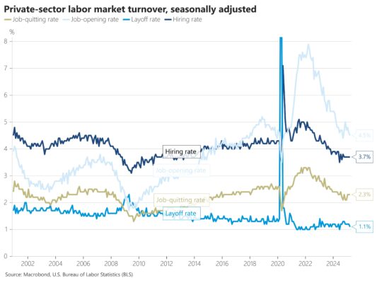 Dentro de las separaciones, las renuncias (3,3 millones) se mantuvieron sin cambios