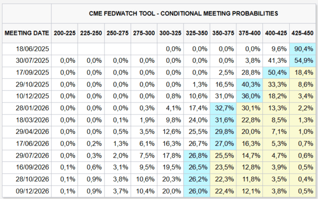 Las probabilidades estimadas de cambios en los tipos de interés muestran ahora solo 2 bajadas de tipos en el año, la primera para el mes de octubre, cuando antes estaba pronosticada para julio.
