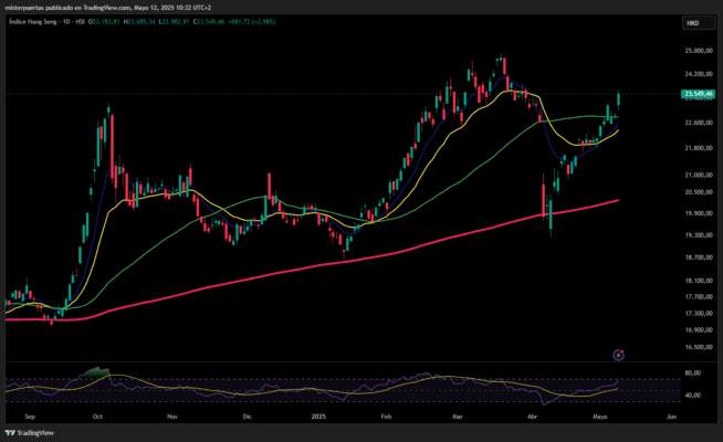 El Hang Seng registró un repunte del 3%, con un volumen superior a los 320.000 millones de dólares de Hong Kong, el más alto en más de un mes.