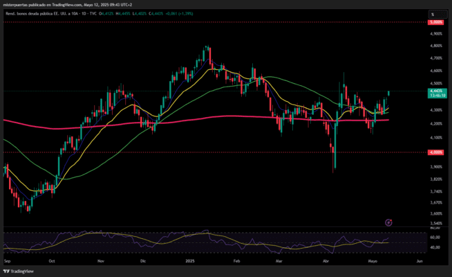 Los bonos se desploman tras el anuncio de la pausa arancelaria… Los rendimientos a 10 suben al 4.45%, el 20 y 30 años roza el 4.90% y el 2 años se aproxima al 4%.
