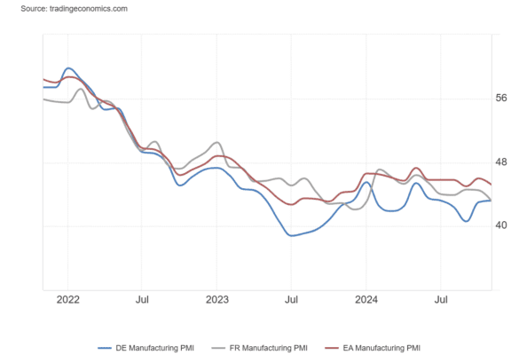 Zona Euro HCOB PMI Manufacturero Zona Euro Nov P: 45,2 (est 46,0; prev 46,0)