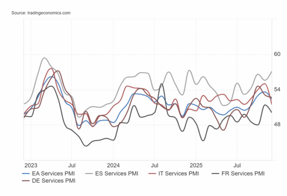Eurozona (final): 52,4 vs 52,6 esperado (52,6 anterior)