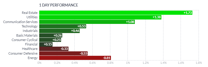 Por sectores, la energía fue la que peor se comportó, el Real Estate lo mejor.