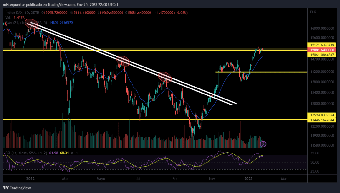 Tercera sesión amagando con rotura de tendencia, veremos si mañana ya se da. Cómo he comentado varias veces, mi opinión es ir hacia un mercado más bien lateral, me sorprendería ver una recuperación fuerte.