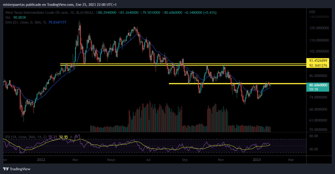 El petroleo vuelve a intentar romper la zona de los 80$, veremos si esta vez si que logra la rotura.
