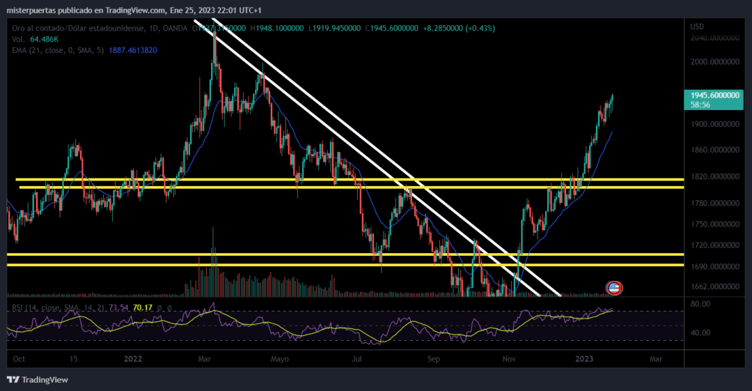 El oro sigue su rally, probablemente veamos correciones, pero la fuerza del activo es algo a destacar. Buen mes de enero nos ha dado, sobre todo con las mineras.