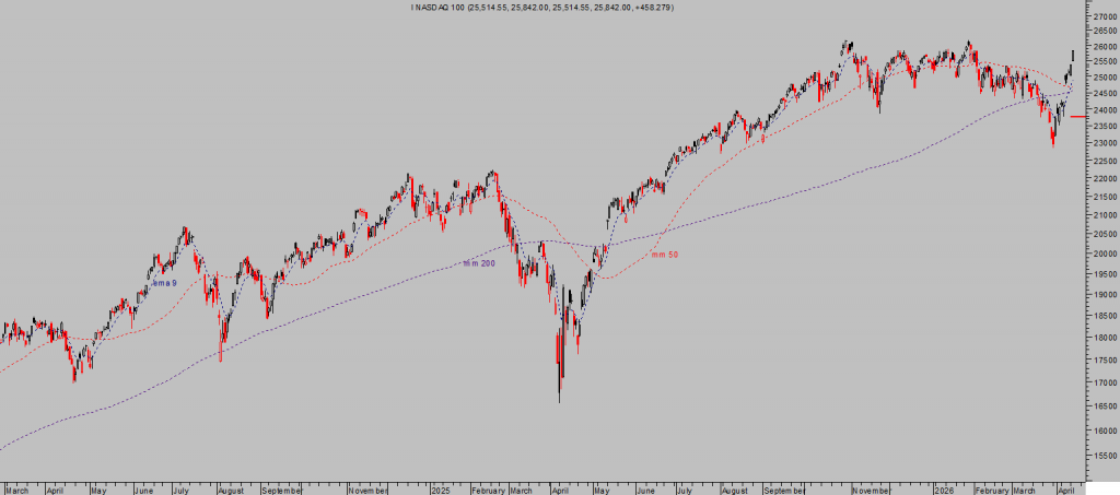 Muchos inversores corrieron a cubrir posiciones, otros aprovechaban para decididamente apostar por caídas y al final el nivel de posicionamiento corto se disparó a niveles claramente excesivos. Entonces, de repente, el mercado frena la caída y comienza un rebote que se convierte en latigazo alcista y en pocas sesiones ha sacudido de nuevo el sentimiento (ha pasado de 10 a 49, en la escala de 0-100 del indicador Fear & Greed Index), ha forzado un cierre de posiciones bajistas salvaje (anticipado aquí en varios posts como este del 1 de abril ¿Por qué un «short squeeze» ahora?, ¿inicio de un «melt up»?. Estrategias) y ha generado una rentabilidad cercana al 13% en el Nasdaq.