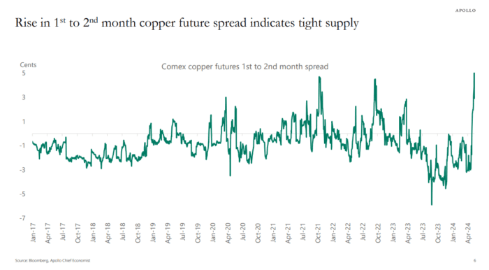 El aumento en el diferencial entre los futuros de cobre del primer y segundo mes indica una oferta limitada.