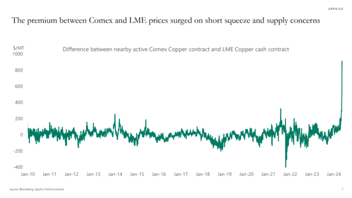 La prima entre los precios de Comex y LME aumentó debido a un short squeeze y preocupaciones sobre la oferta.
