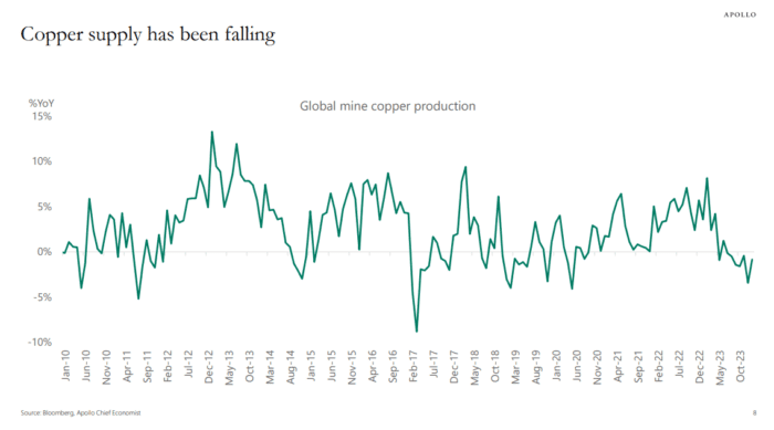El suministro de cobre ha estado disminuyendo.