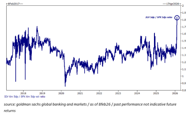 Una nota de investigación de GS, bien sincronizada, comparó la posible “disrupción del software” de 2026 con la “disrupción de la prensa escrita” de principios de los 2000 (enlace).