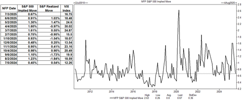 En su conferencia de prensa posterior al FOMC, el presidente de la Fed, Powell, afirmó que el mercado laboral se mantiene sólido, reconociendo únicamente un “enfriamiento continuo muy, muy lento” que no considera preocupante; Powell citó la sólida creación de empleo y la participación en la fuerza laboral como señales de resiliencia continua. Esta opinión también ha sido compartida por otros funcionarios. Los responsables de la formulación de políticas también siguen ofreciendo sus advertencias habituales, según las cuales si el mercado laboral se deteriorara drásticamente, la Fed estaría dispuesta a intervenir con una política más flexible, pero por ahora, los funcionarios no lo ven en los datos actuales. En cambio, si bien los miembros de la Fed han señalado que están atentos tanto a sus mandatos sobre la inflación como al mercado laboral, gran parte de la atención parece centrarse en la dinámica de la inflación, donde la mayoría de los oradores que hicieron comentarios tras la reunión del FOMC sugieren que existen algunos riesgos de que las presiones arancelarias puedan impulsar los precios al alza. Collins de la Fed (votante de 2025), por ejemplo, señaló que existían riesgos de que la inflación subyacente del PCE pudiera superar el 3% interanual para finales de año. Aun así, cualquier dato decente sobre empleo probablemente será utilizado por el presidente estadounidense Trump como argumento de por qué la Fed ya debería estar en un ciclo de flexibilización, aumentando sus críticas recientes; cualquier sorpresa negativa probablemente también será utilizada por el presidente como argumento de por qué la Fed debería estar recortando las tasas.