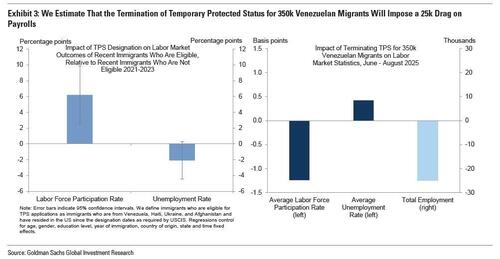 - Por otro lado, Goldman espera una cifra inferior a la estimada de 85.000 debido a “la terminación del Estatus de Protección Temporal para aproximadamente 350.000 inmigrantes venezolanos a mediados de mayo, lo que impondrá un lastre de 25.000 y una disminución de 15.000 en las nóminas del gobierno federal”.