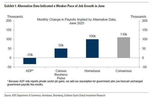 - Big Data. Las medidas alternativas de crecimiento del empleo indicaron un ritmo débil de crecimiento en junio, con un promedio de 39.000 puestos de trabajo en todos los indicadores que Goldman sigue.