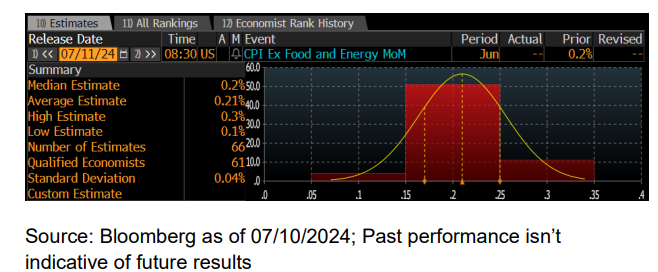 Desde GS Research: Esperamos un aumento del 0.21% en el IPC subyacente de junio (vs. 0.2% consenso), lo que corresponde a una tasa interanual del 3.43% (vs. 3.4% consenso); enlace. Destacamos tres tendencias clave a nivel de componentes que esperamos ver en el informe de este mes: