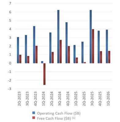 Pero aquí es donde empieza lo interesante. Ese FCF positivo no viene de un negocio especialmente fuerte, sino de gastar menos de lo que deberían: el CapEx fue solo 2.500M$, muy por debajo del ritmo necesario para cumplir su propia guía anual. Es decir, han “pospuesto” inversión.