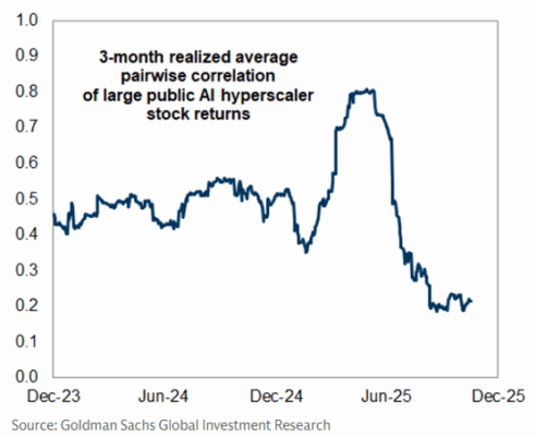 Los eventos de resultados de NVDA han sido decepcionantes para la acción incluso cuando la empresa ha cumplido operativamente. Entre los hyperscalers, unos buenos resultados suelen llevar a una reacción inicial positiva, pero el seguimiento posterior ha sido débil (el debate de crecimiento del beneficio vs múltiplos).