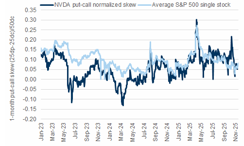 El put-call skew de NVDA sugiere que el posicionamiento en opciones de NVDA está en línea con el de una acción promedio del S&P 500.