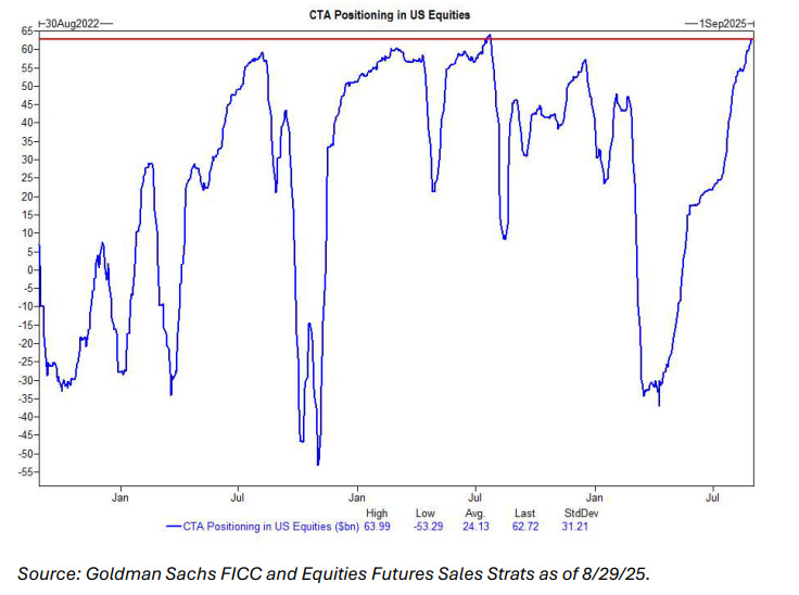 Se acabó. El posicionamiento de los CTAs en renta variable estadounidense se encuentra oficialmente en el percentil 100 y está totalmente agotado.