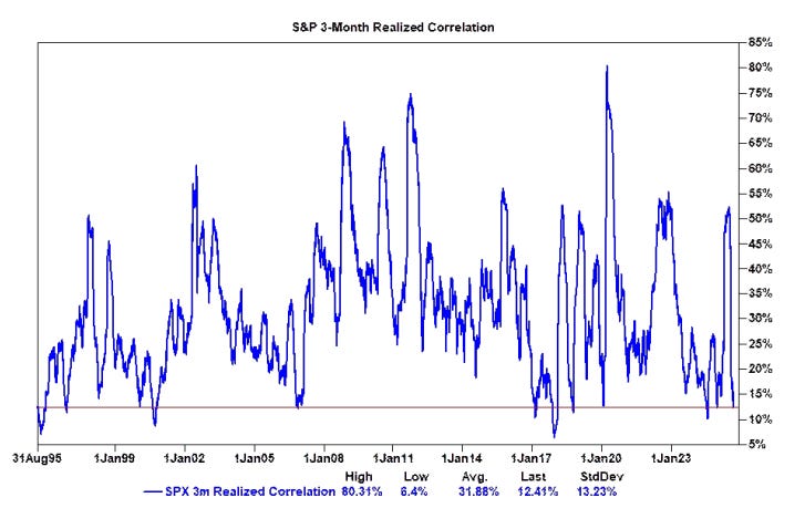 La correlación durante el verano se ha mantenido cerca de mínimos de 30 años, casi dos desviaciones estándar por debajo de la media.