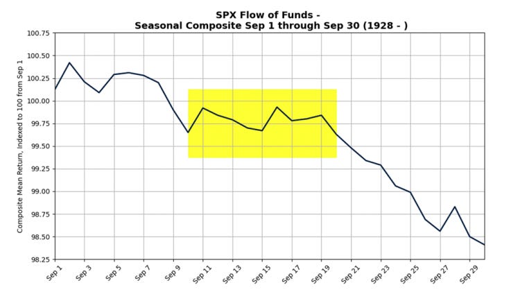 La segunda mitad de septiembre es el peor período de dos semanas del año, con un rendimiento medio de -1,38% desde 1928.
