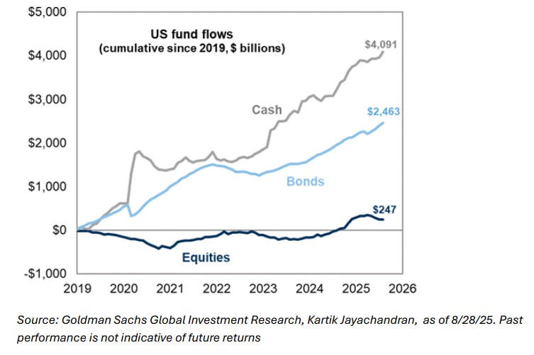 Sí, así es: las entradas en fondos monetarios ya son 16,5 veces mayores que en renta variable. El S&P podrá estar subiendo, pero el efectivo sigue siendo el rey.