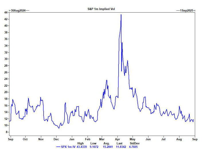 Los niveles de volatilidad implícita a 1 mes del S&P están apenas por encima de los mínimos de 1 año y se muestran extremadamente baratos si se tienen en cuenta todos los eventos programados en el calendario de septiembre (y los no programados).