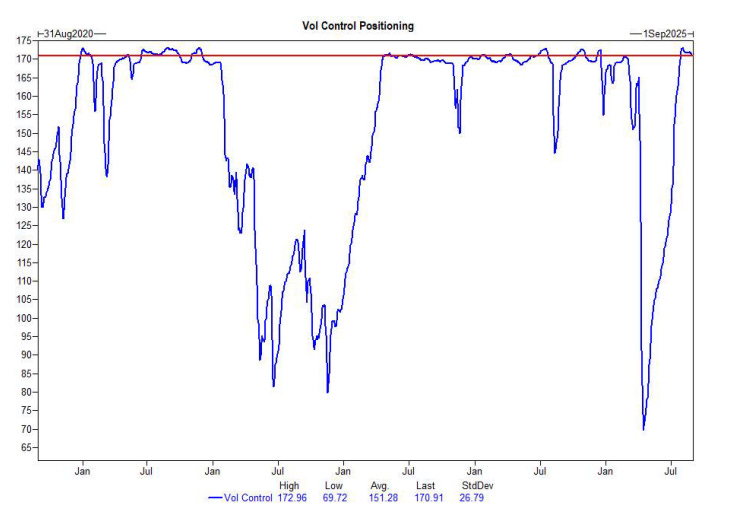 Con los niveles de volatilidad implícita y realizada cerca de mínimos de 1 año, los fondos de Vol Control han añadido una exposición considerable.
